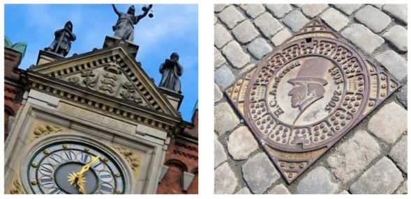 Hvad er det for tre figurer, der pryder Odense Rådhus?